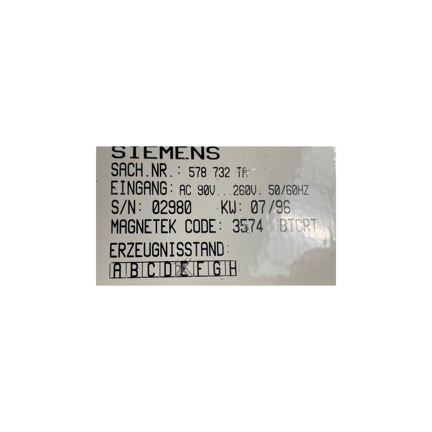Alimentation SIEMENS 578732TA
