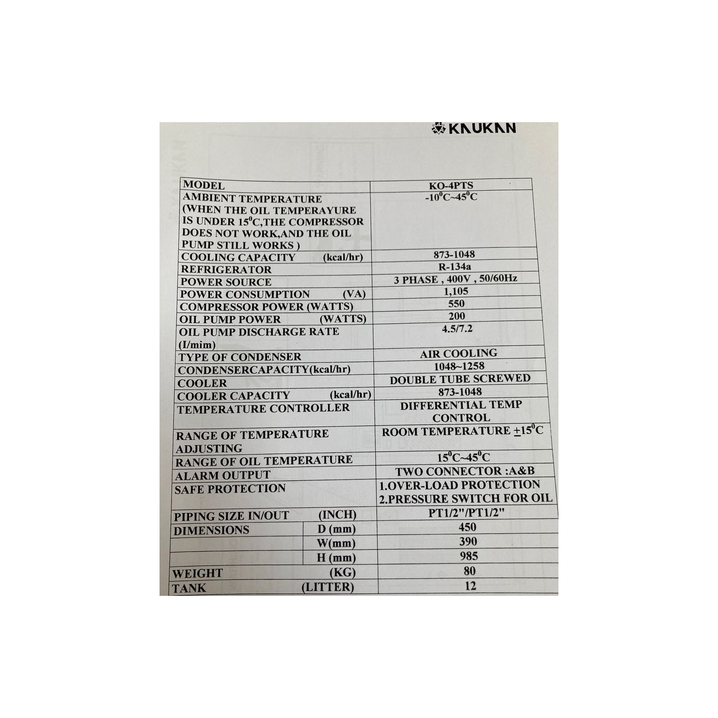 KAUKAN KO-4PTS spindle oil cooler