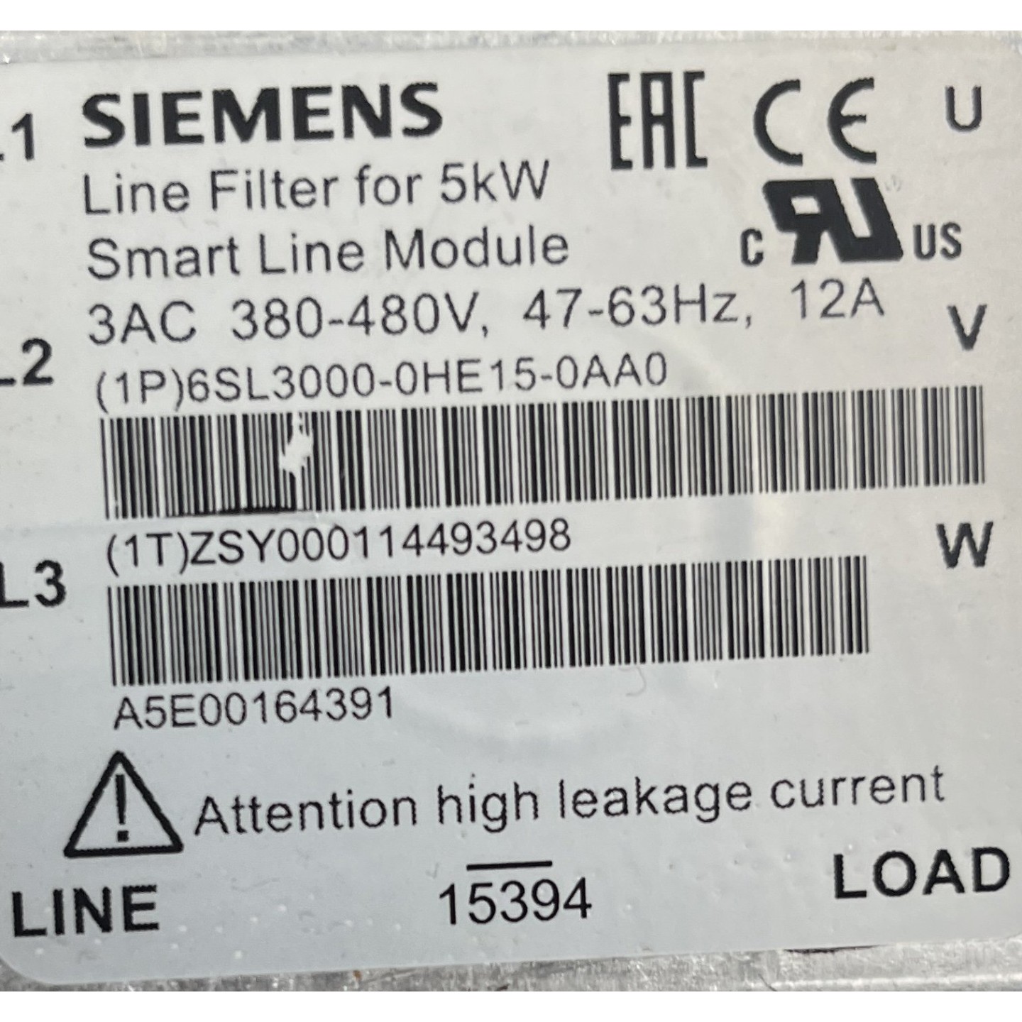 Filtre SIEMENS 6SL3000-0HE15-0AA0