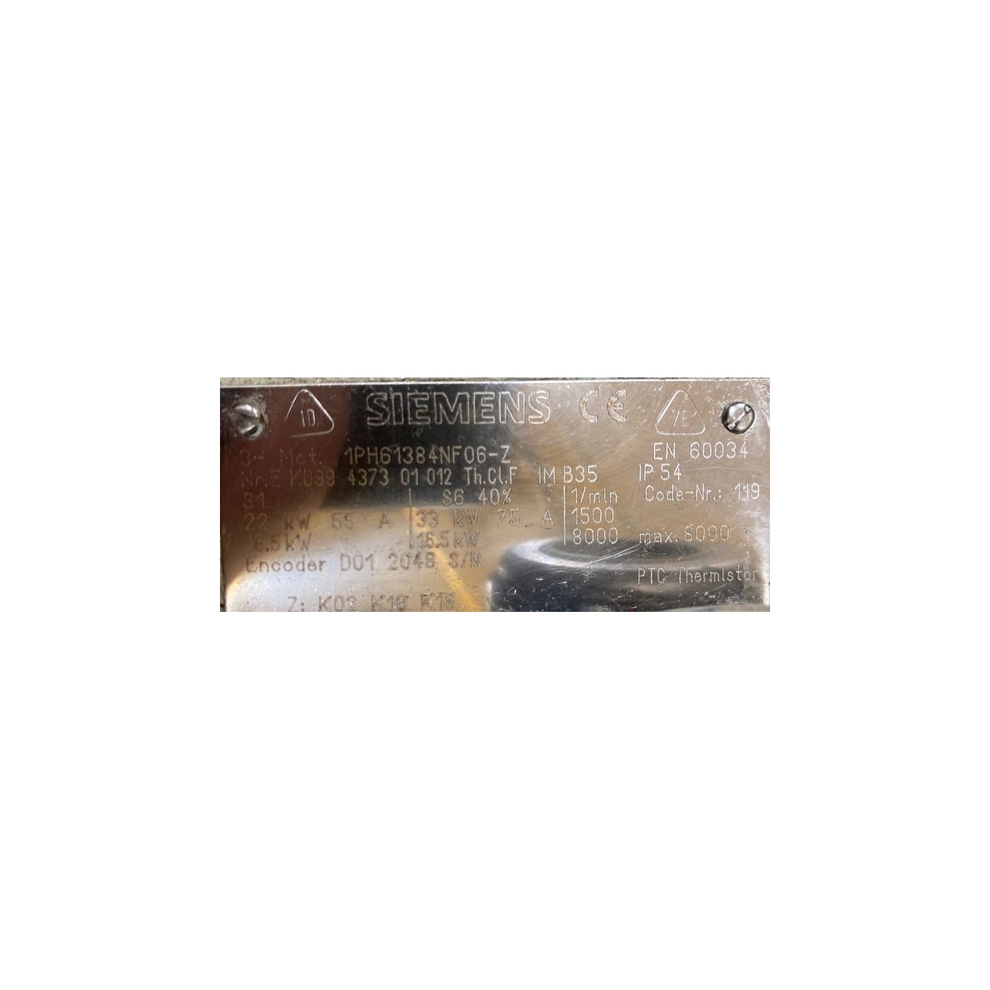 Moteur de broche SIEMENS 1PH6138-4NF06-Z Z:K02 K10 K18