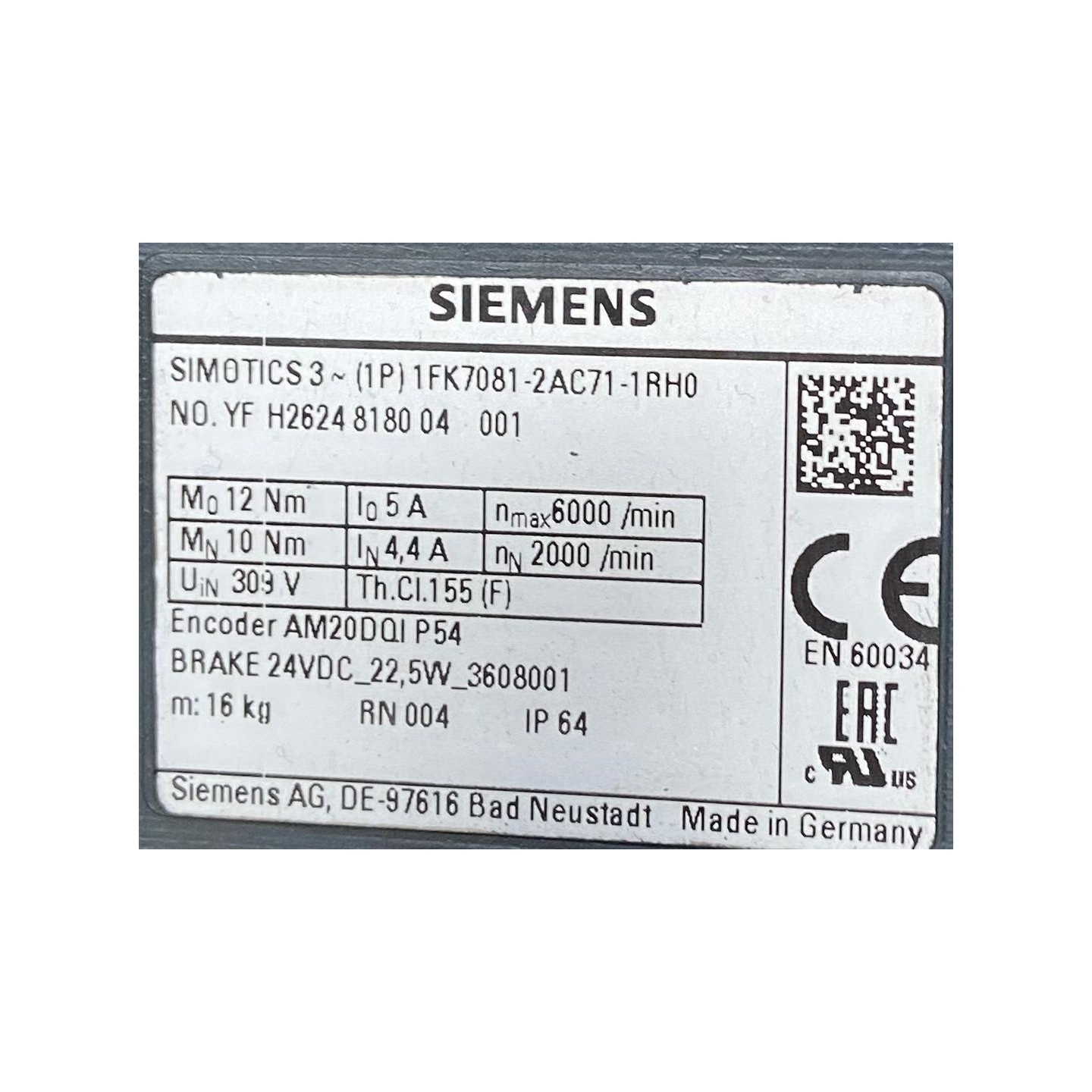 SIMOTICS 3 SIEMENS 1FK7081-2AC71-1RH0