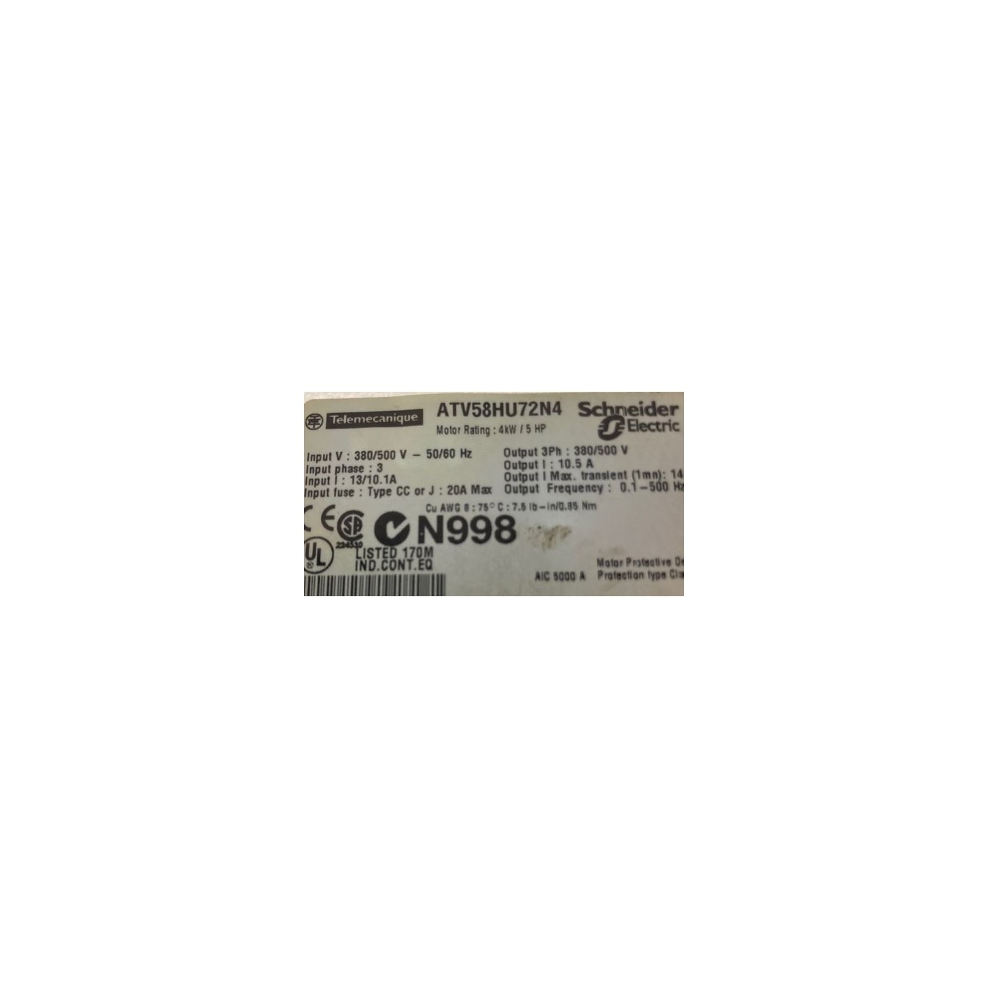 Variateur 4kW TELEMECANIQUE ATV58HU72N4