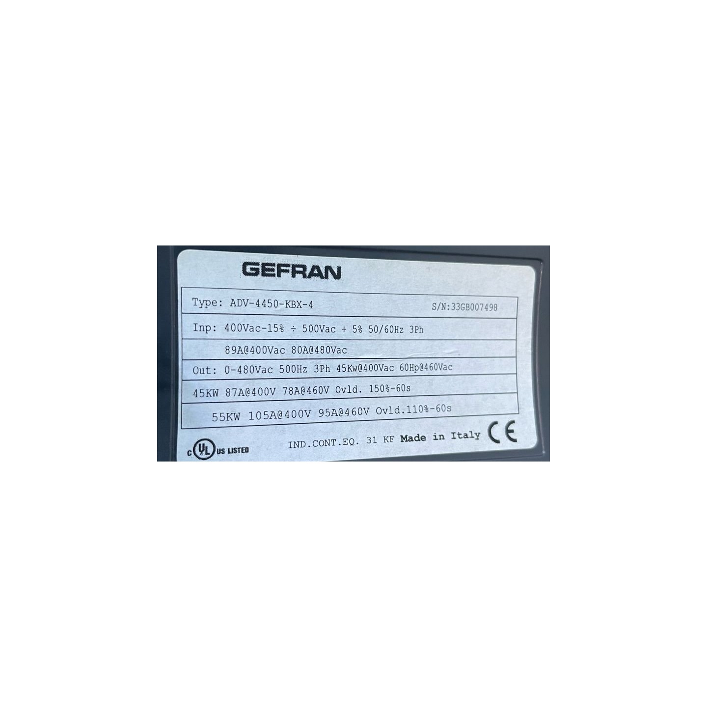 Variateur 45kW GEFRAN ADV-4450-KBX-4