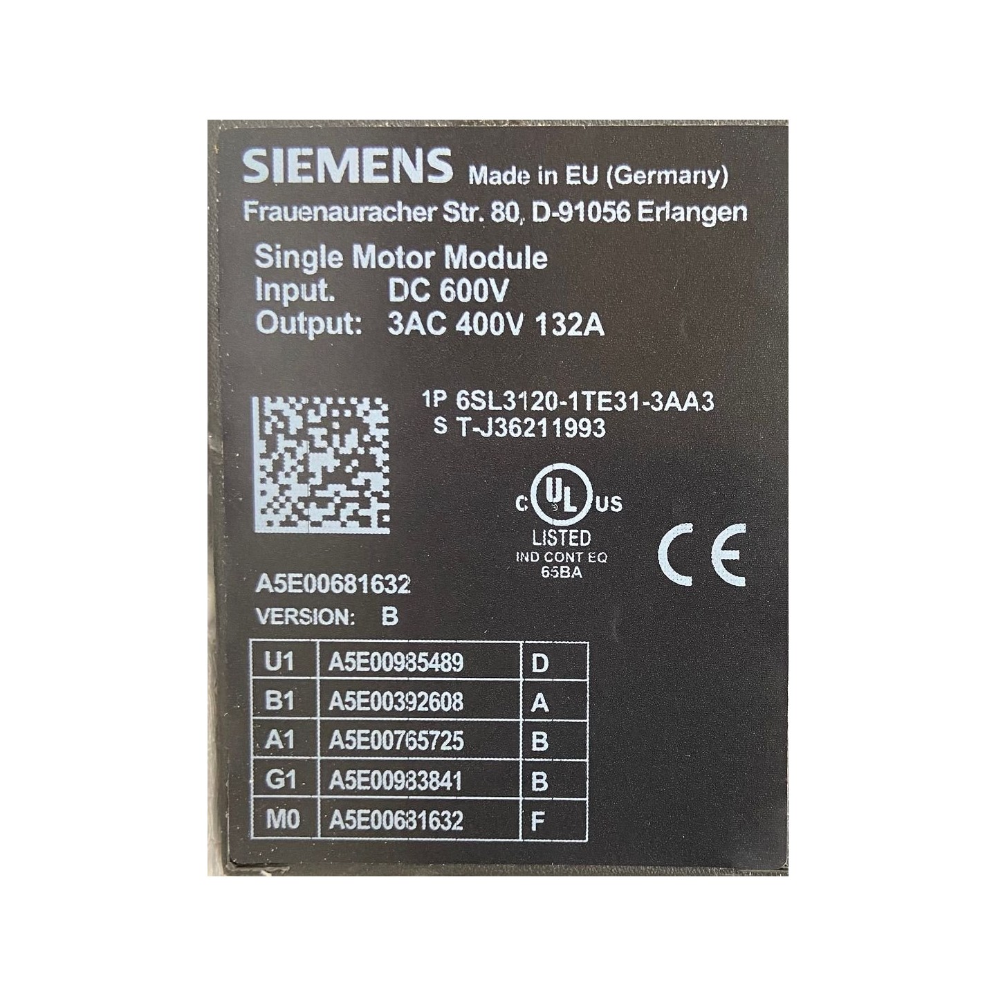Alimentation SIEMENS 6SL3120-1TE31-3AA3