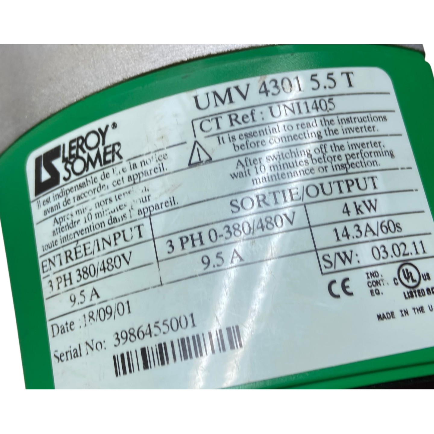 Variateur LEROY SOMER UMV 4301 5.5T