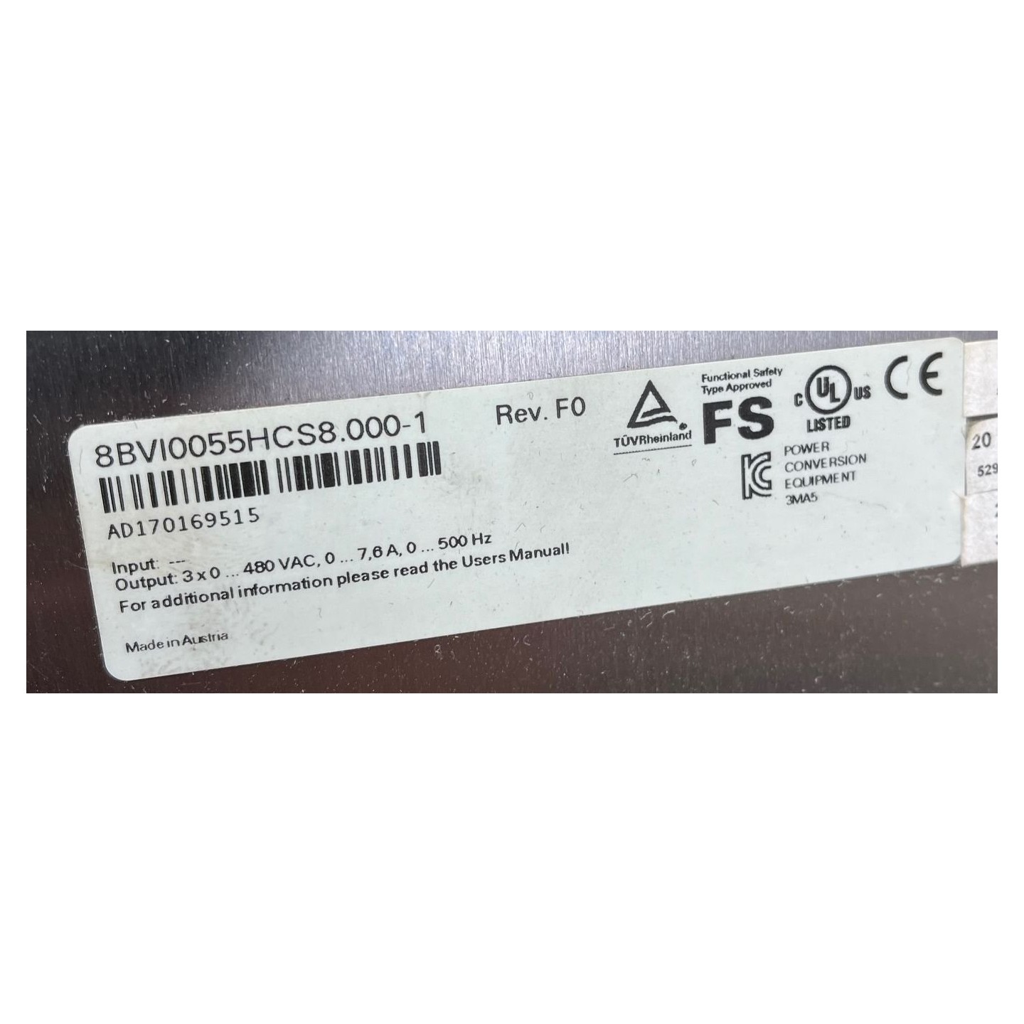Variateur ACOPOS multi 10055S B&R 8BVI0055HCS8.000-1 Rev.F0 COMAU CR10141883