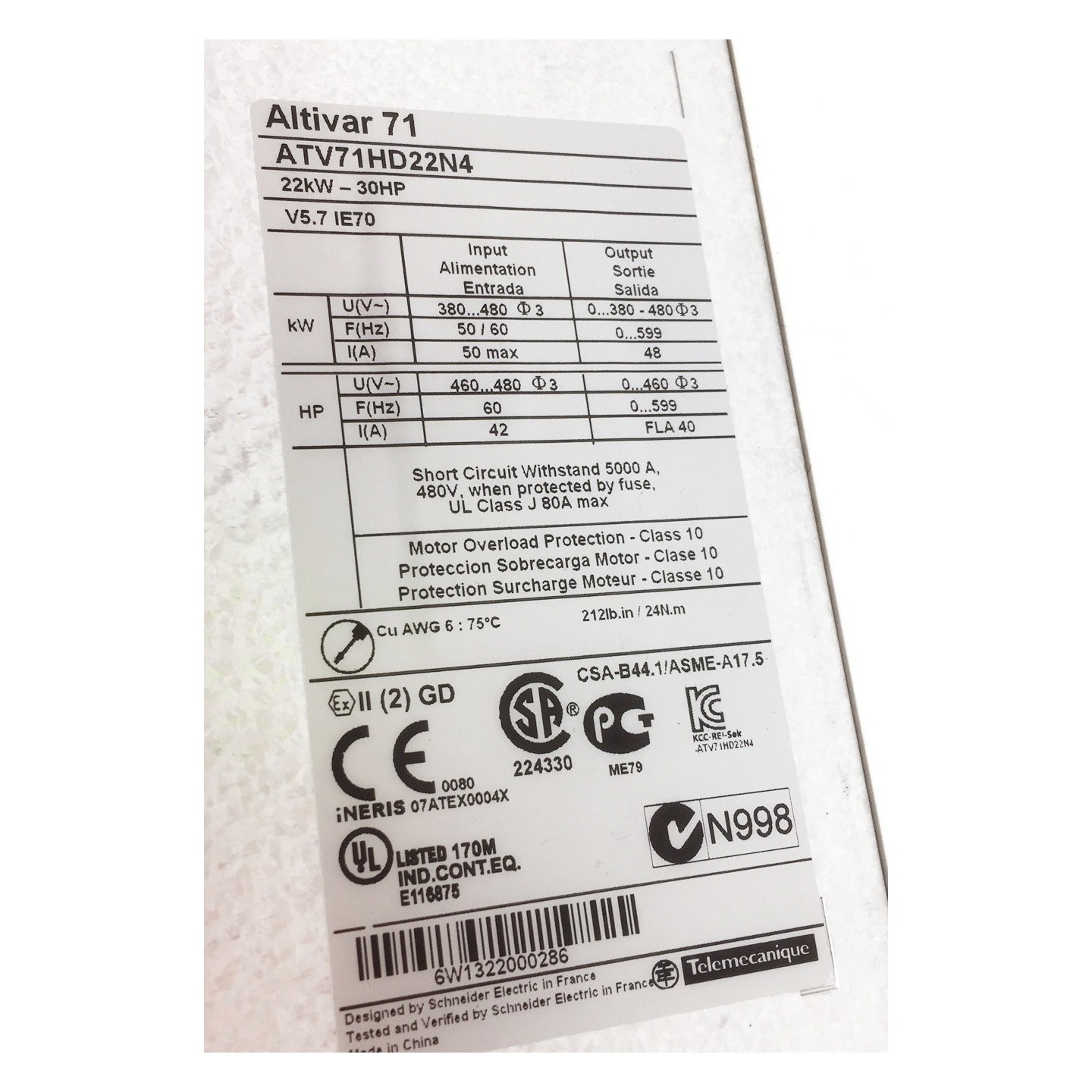 SCHNEIDER TELEMECANIQUE ATV71HD22N4 22kW