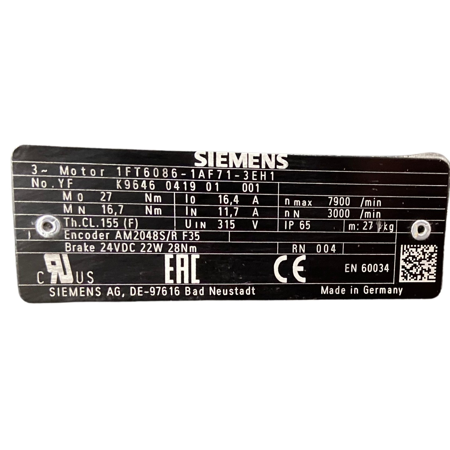 Moteur SIEMENS 1FT6086-1AF71-3EH1