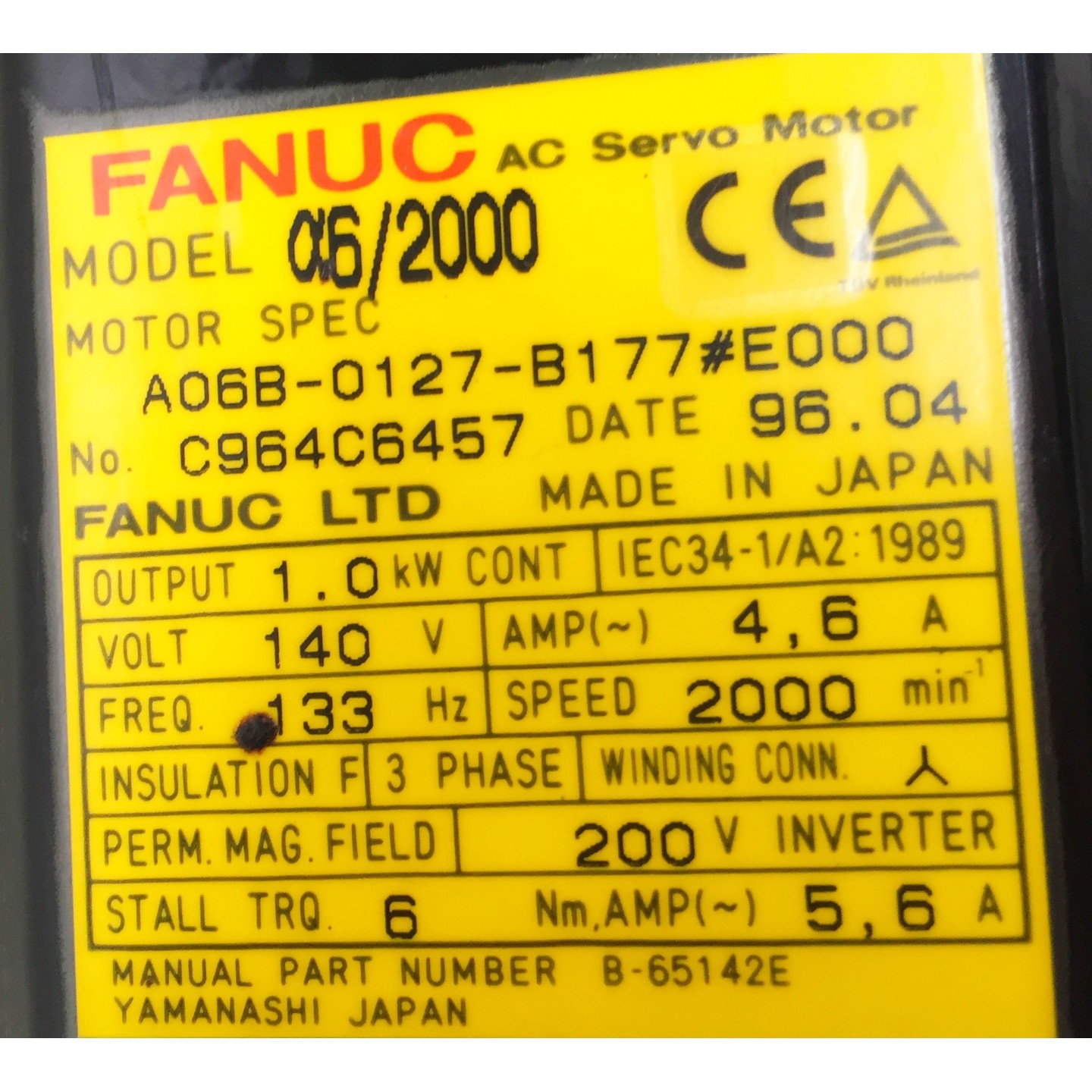 Motor de freno FANUC 6/2000 A06B-0127-B177