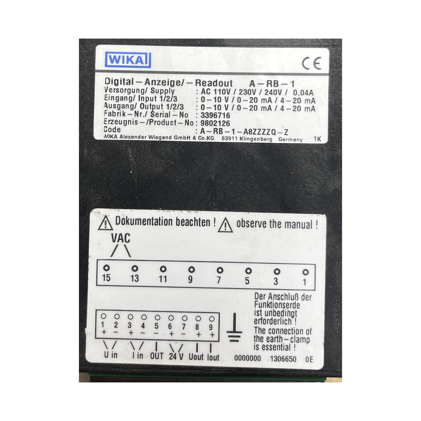 WIKA Tronic Line Digital Anzeige-Readout A-RB-1-A8ZZZZQ-Z
