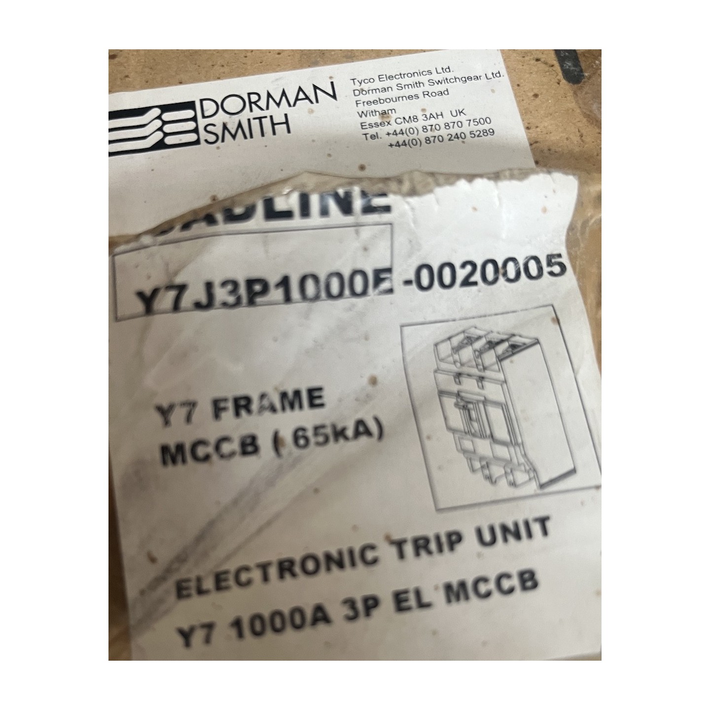 Disjoncteur Dorman Smith 1000A Y7J3P1000E MCCB 408-A4-14948-35