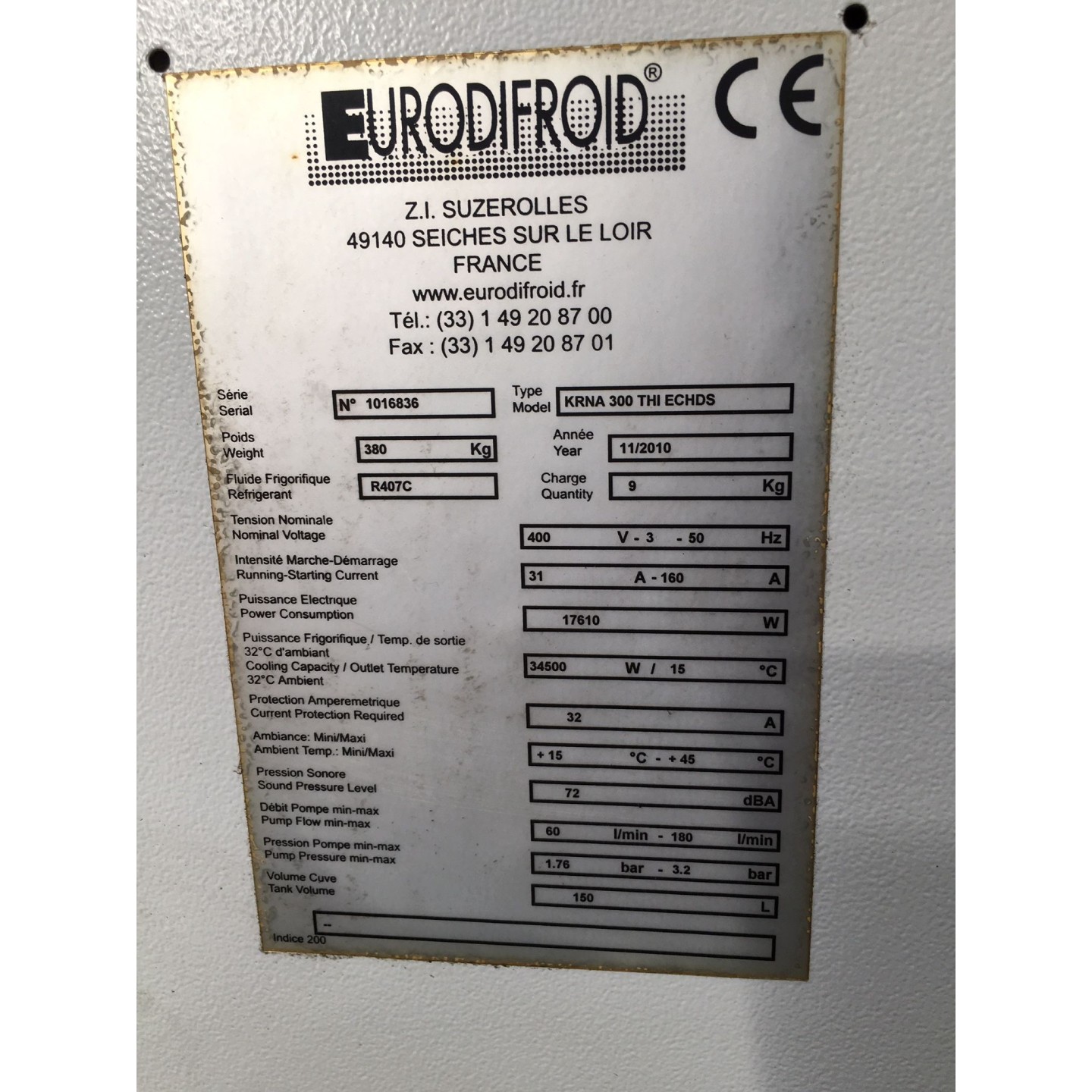 Refroidisseur d'huile EURODIFROID KRNA 300 34,5 KW