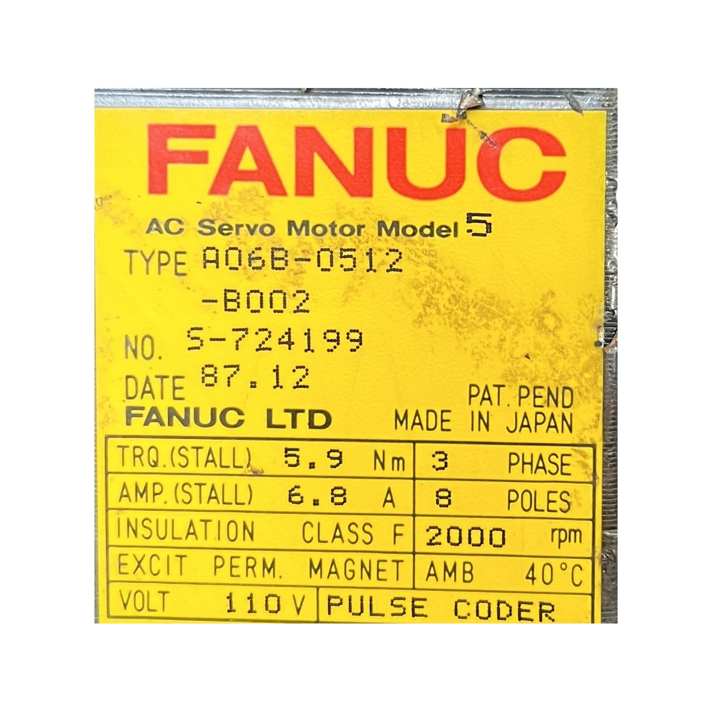 A06B-0512-B002 FANUC Servo Moteur Model 5
