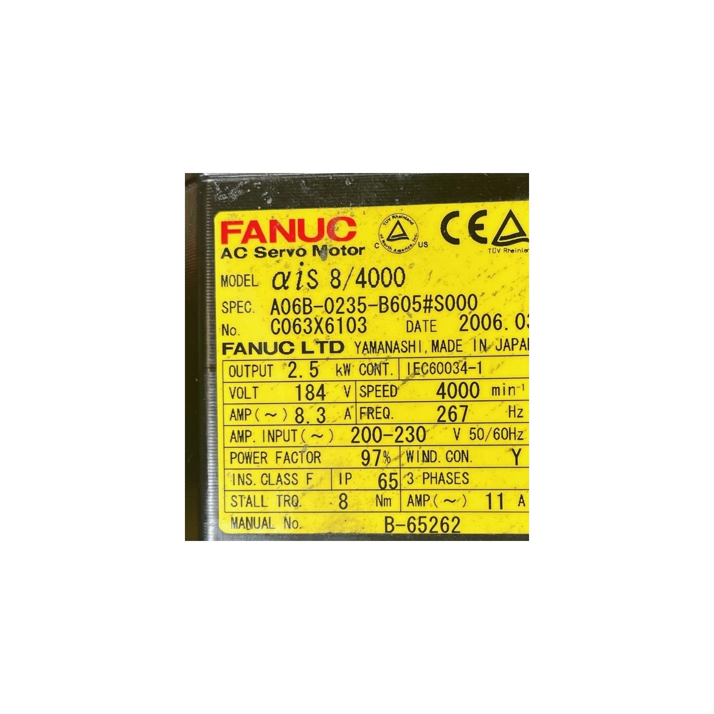 AC servo motor ais 8/4000 FANUC A06B-0235-B605 S000 avec codeur FANUC A860-2010-T341