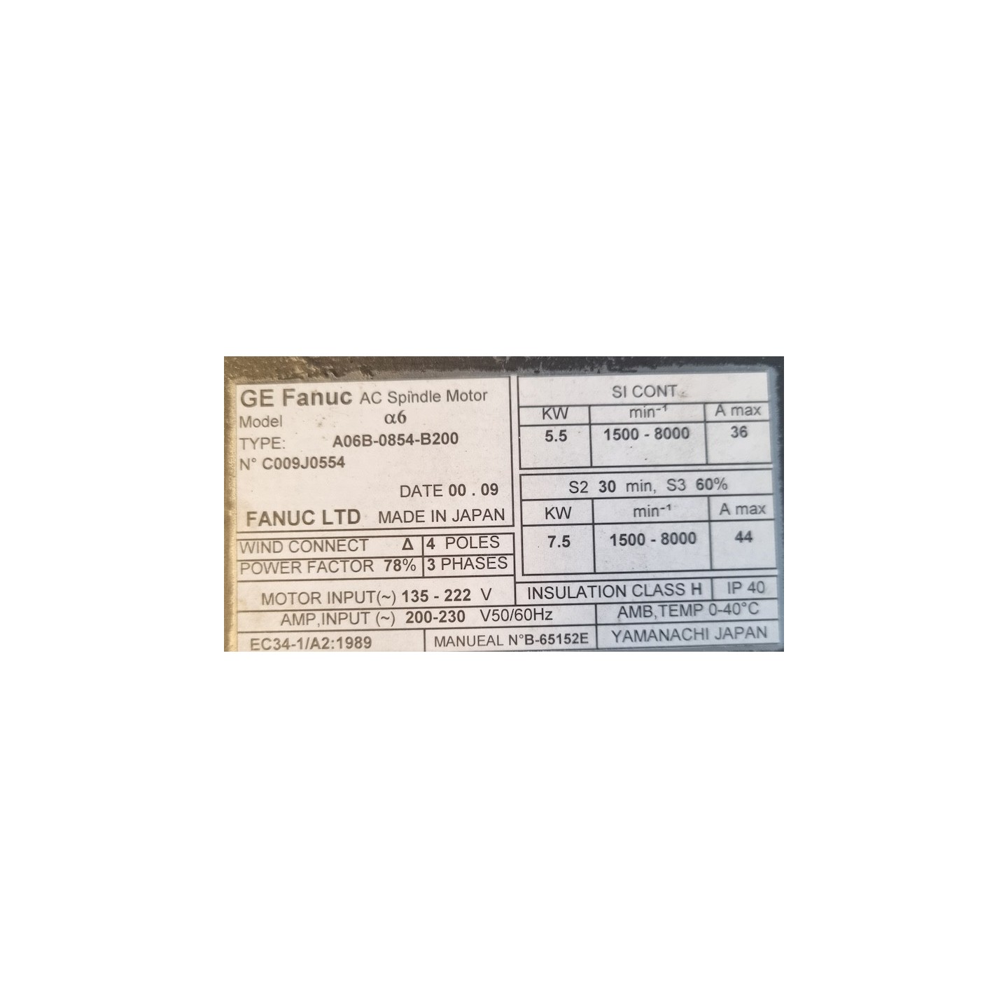 AC spindle motor FANUC A06B-0854-B200