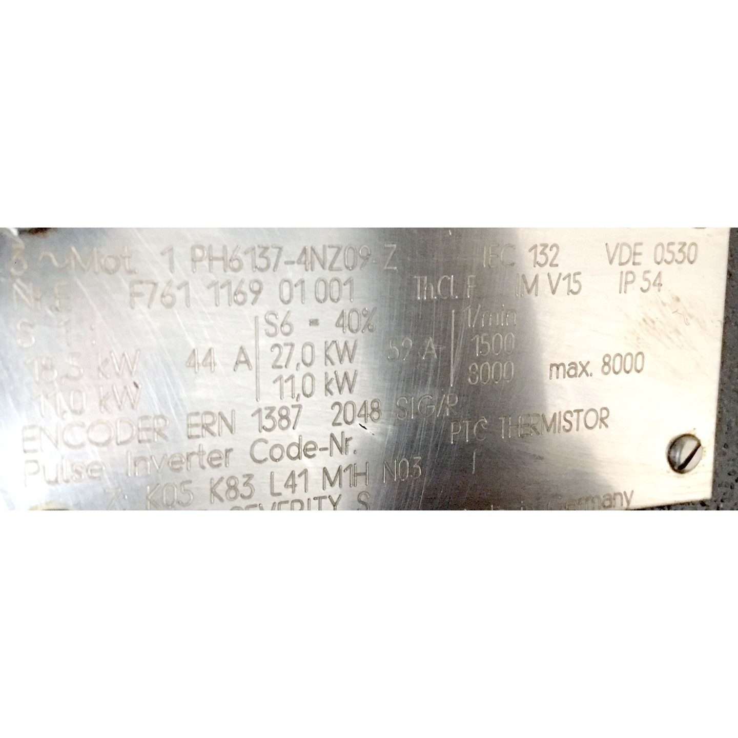 Moteur de broche SIEMENS 1PH6137-4NZ09-Z K05 K83 L41 M1H N03