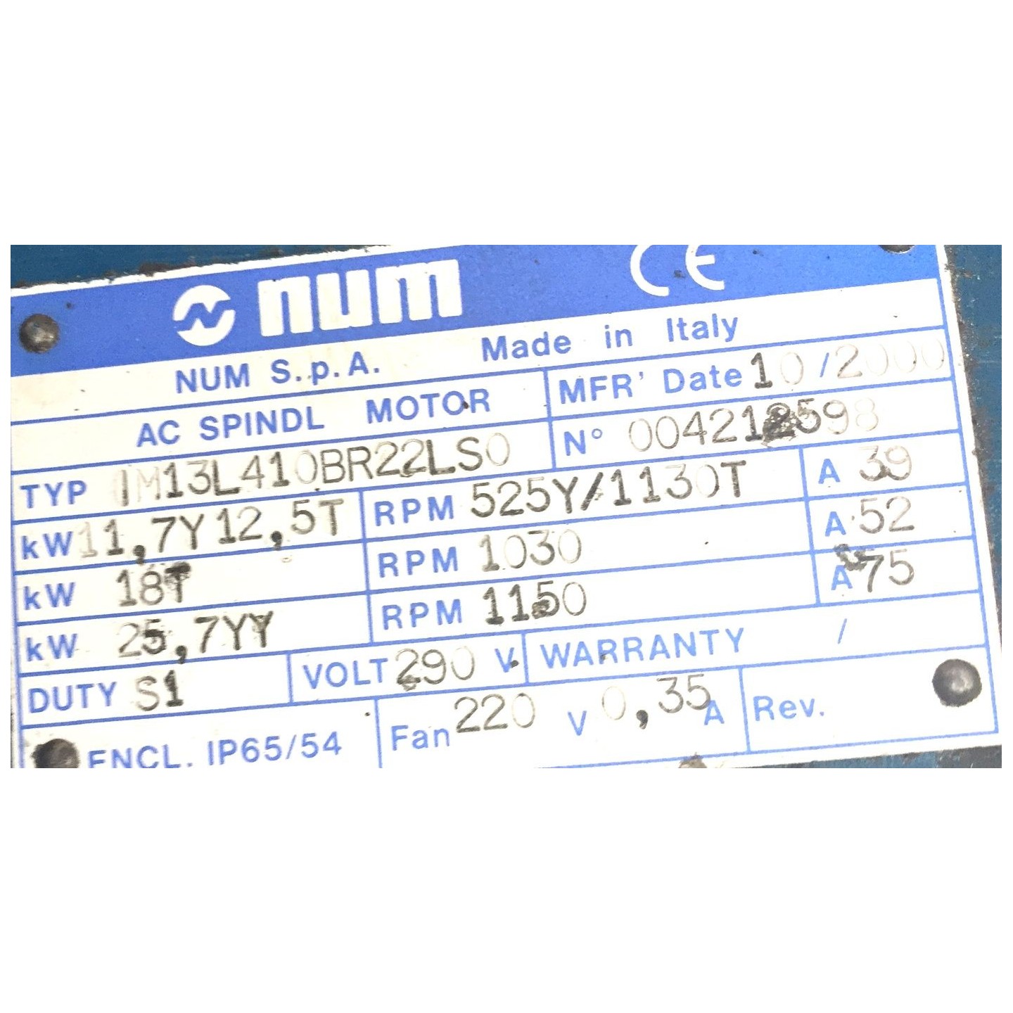 Moteur de broche NUM SOMAB 550 IM13L410BR22LS0