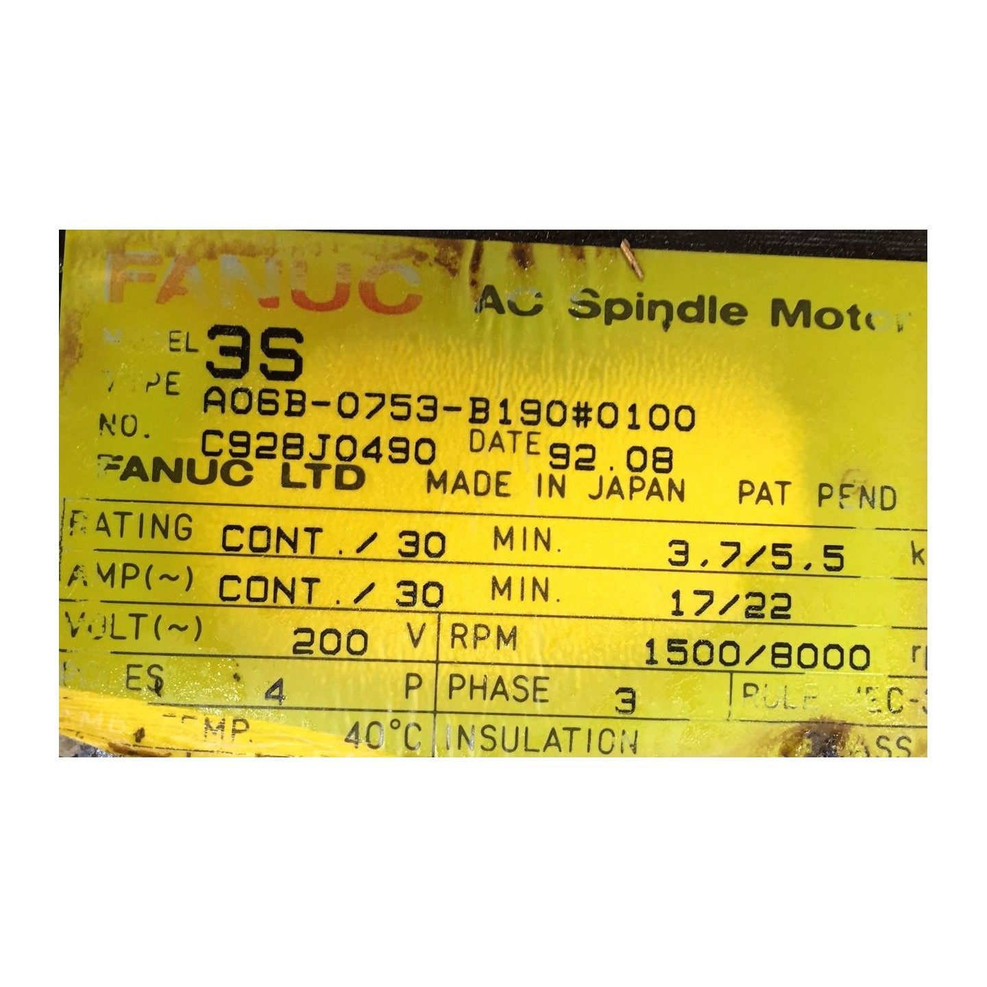 Moteur de broche FANUC 3S A06B-0753-B190 0100