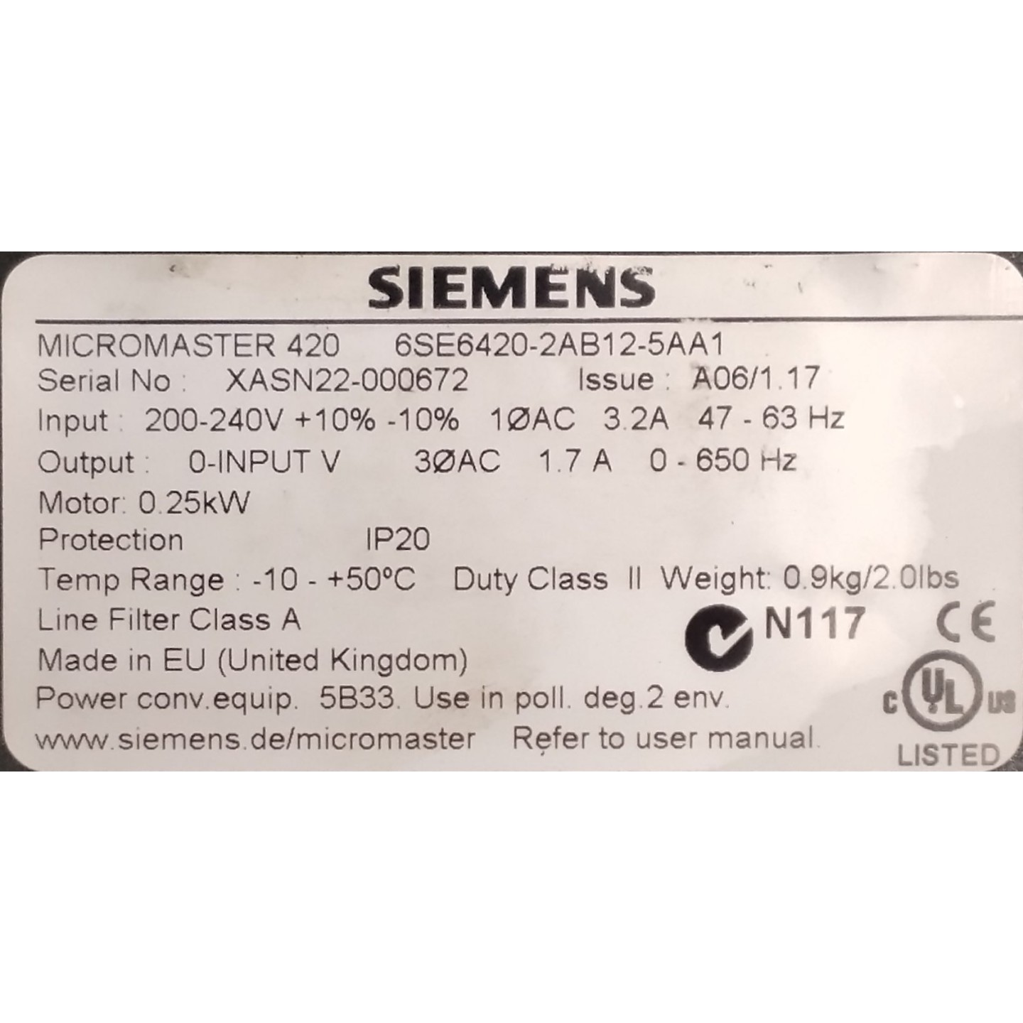 Variateur SIEMENS 6SE6420-2AB12-5AA1