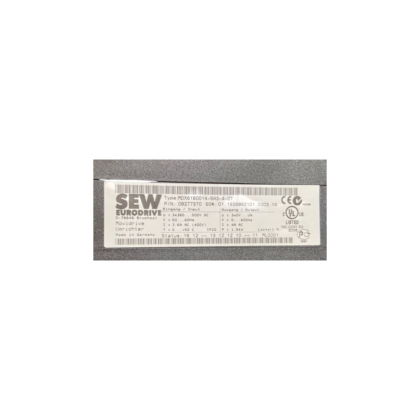 Variateur SEW MDX61B0014-5A3-4-0T