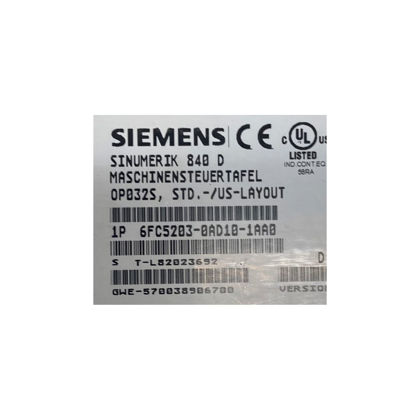 Pupitre SINUMERIK 840D MASCHINENSTEUERTAFEL OP032 SIEMENS 6FC5203-0AD10-1AA0